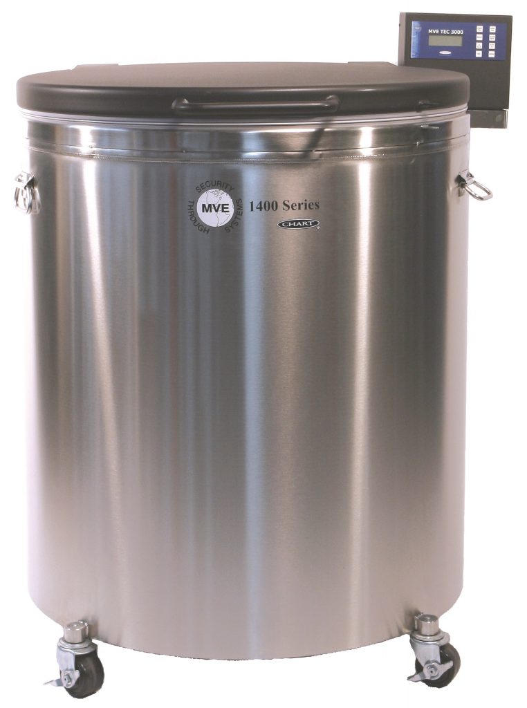 Engineered for this purpose, the MVE series can be operated in liquid nitrogen vapour phase using a vapour storage accessory pack, but temperatures are less stable than with the new and more sophisticated HEco or -190 Series. The MVE series is available in sizes ranging in capacity from 3,200 to 39,000 2.0 ml vials and can be equipped with a Tec 3000 controller for monitoring and autofill.